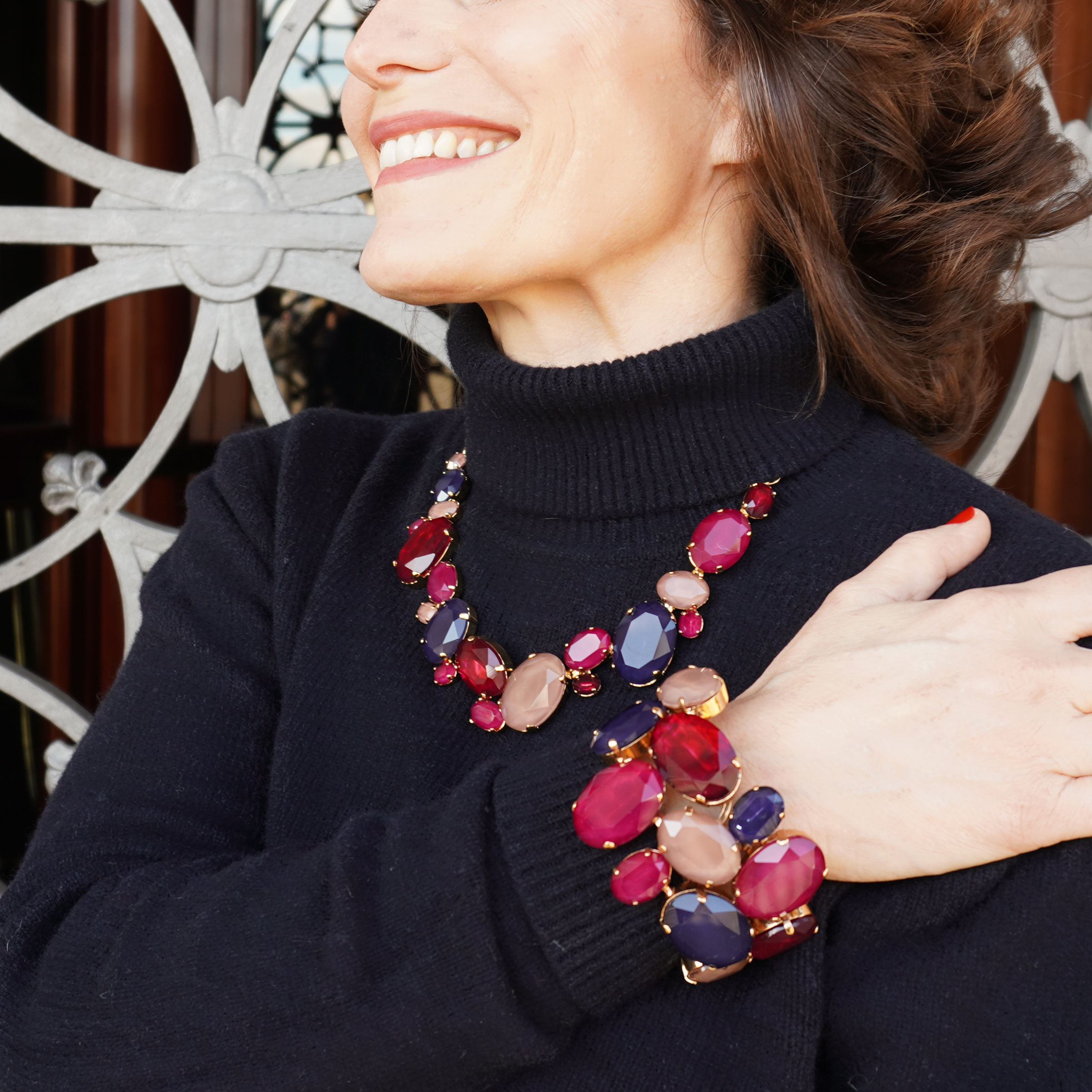 Handmade gold plated brass bracelet, with hand painted crystals and Swarovski© stones.